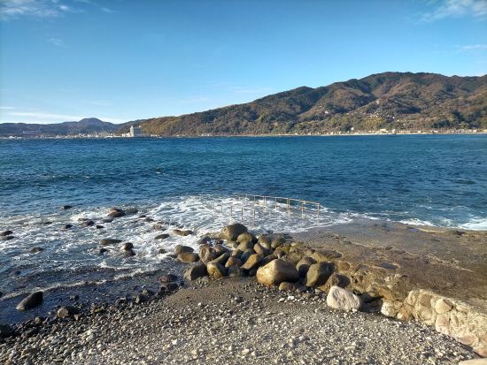 (ビーチ)→現在、宇佐美ビーチには、5匹のアオウミガメがいます。よくいる場所が決まっているカメも数匹います。一番大きなカメは、10mのテトラポッド下のくぼみにいることが多いです。2番目に大きなカメは土管方面に向かうガイドロープに出てくる大きなアンカー(水深9mくらい)の横にいることが多いです。それ以外の3匹は、線路付近で遭遇したり、土管エリアで遭遇したりまちまちです。また、ネコザメは土管エリアでは確実に出会えます。土管エリア以外での偶然の遭遇も、冬季は多いです。